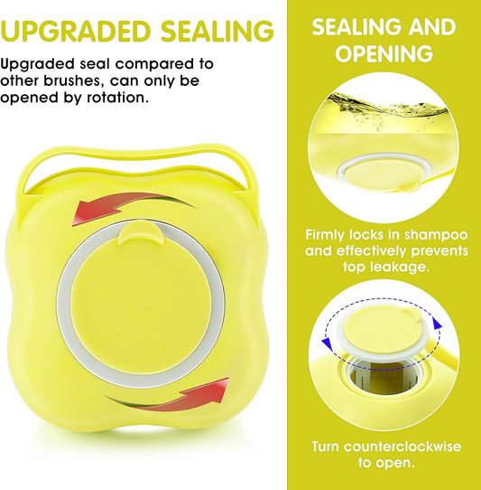 Dog Cat Bath Brush, Dog Shampoo Brush Silicone Puppy Massage Brush Hair Fur Grooming Cleaning Brush Soft Shampoo Dispenser (Yellow New)