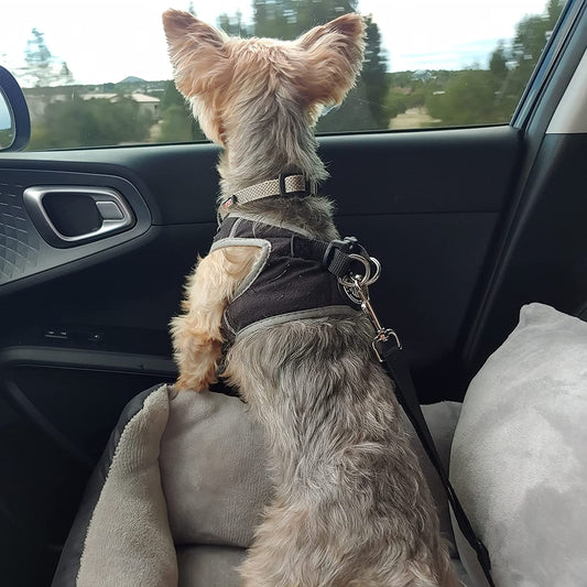 Dog Car Seat with Safety Belt, Washable Booster for Small Dogs, Anti-Slip Travel Bed for Front or Back Seat, Adjustable Buckle, Storage Pockets
